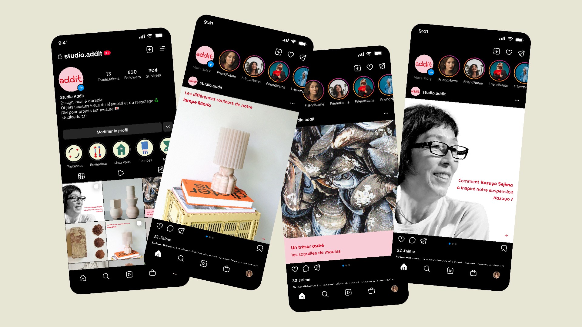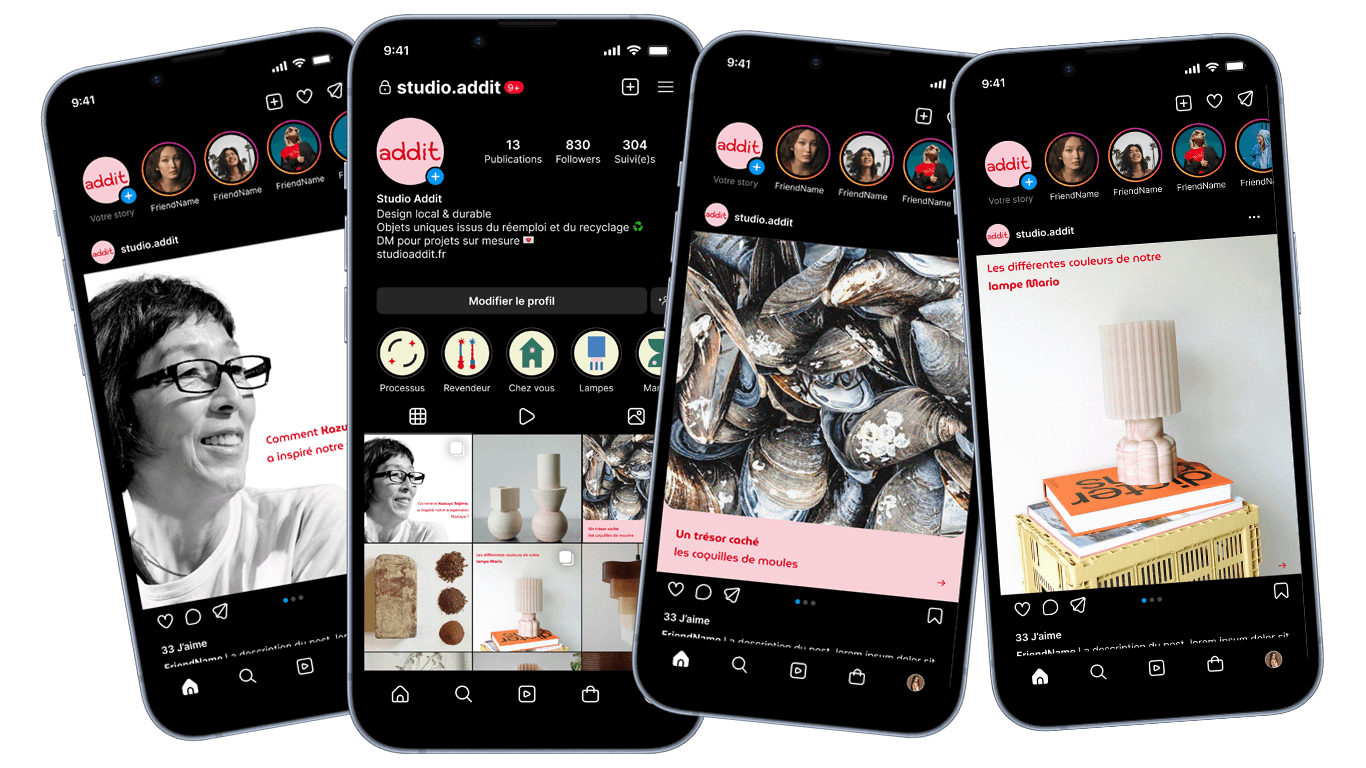 Studio Addit est un atelier lillois fondé par Denitsa et Alexis, architectes de formation, engagé dans le réemploi des matériaux et la revalorisation des déchets issus de la construction et de l’industrie alimentaire. Leur démarche s’inscrit dans une vision du design lente, responsable et ancrée dans le faire, où la matière existante devient le point de départ de chaque création. L’accompagnement porte sur le développement et l’affinement de l’identité graphique de la marque, afin de traduire visuellement ses valeurs : réemploi, slow design, fabrication locale et engagement environnemental. Le travail vise à structurer un langage visuel cohérent et sensible, capable de dialoguer avec la matérialité des objets, leur caractère artisanal et leur singularité. Pensée comme un système évolutif, l’identité accompagne Studio Addit dans son développement, tout en laissant une place à l’expérimentation, aux variations de matière et à l’unicité de chaque pièce. Projet en cours.